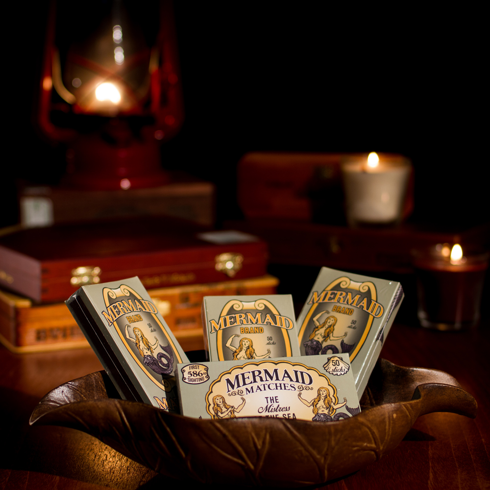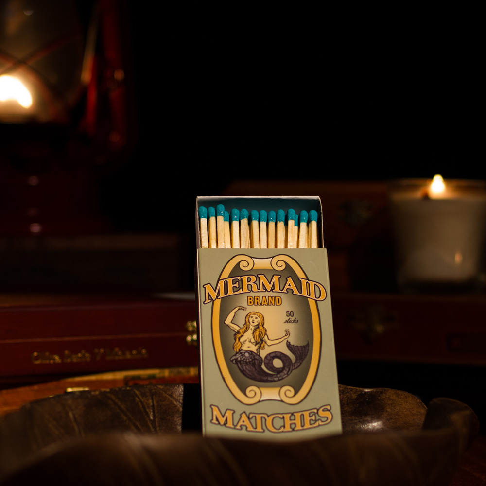 From HomArt California Design House, this box of 50 match sticks features a playful, nautical box design with coordinating match tips. Safety matches, 50 sticks per box, 4.5″ sticks with match head color coordinated to the box design.